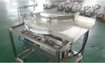 Það fóðrar flöskurnar í fyllingarvélina í einu.